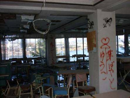 レストランです。 レストラン「グリル小曲園」です。 景色が良いのが分かるでしょうか? 適度な、落書きが廃墟を彩ります。 |