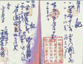 旅籠帳の内容 静岡県駿河国榛原郡興津駅五十五番地住 水口屋半十郎の角印が捺してあります。 この水口屋の主人が一新講社を設立した人です |
