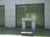 | 外壁両サイドの花崗岩パネルのグレーと、ガラスのカーテンウォールが対照的。まんなかにあるには「鎮魂」の碑。水のカーテンは一服の清涼剤でした。 | この何も無い空間に心が癒される。 | 霊苑から見えるのが、文京シビックセンターです。私たちはこのあとセンターの展望室に登り、東京のパノラマを満喫しました。 | おまけ。 センターの後ろにある、柔道の殿堂講道館。加納治五郎の銅像です。時間の都合で今回は回れませんでした。 |