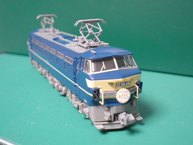 最終編成の先頭を飾るにふさわしい出来。今回の企画販売にあわせてリニューアルされた。KATO製品と同様にフライホイールの搭載や手摺の別パーツ化が行われている。ボディや床下の塗装やディテールなど、従来品とは比べ物にならないほど徹底的に表現されている。ただ、別パーツである信号炎管が外れやすいのと、プラ製のパンタグラフの強度が気になるところである。ヘッドマークの取り付けかたも改良され、簡単に交換できるような構造になった。