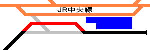上図で引込み線があった場所に新たに仮線を設置し、駅を出て直後の場所からJR線と分かれてカーブに差し掛かったところまでの間が切り替わった。※赤線部は今回の変更箇所