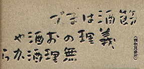 畳が飲む酒二万石−1日の疲れをいやす少量の酒に不自由をしている人があるのに飲めもせぬ酒を注文して畳に飲ます勿体ないことは必ずやめましょう