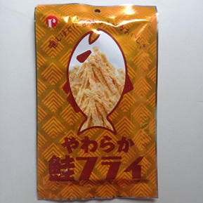 原材料名 小麦粉(国内製造)、植物油脂、魚肉シート(鮭すり身、澱粉、その他)、澱粉、食塩、鮭風味調味料、全卵粉、卵白粉、香辛料、鮭エキス、(添加物)ソルビトール、グリセリン、調味料(アミノ酸等)、加工澱粉、香料、甘味料(ステビア)、膨張剤、酸化防止剤(ビタミンE)、着色料(赤102、黄5)、(原材料の一部に海老、小麦、卵、鮭、ゼラチン、大豆を含む)