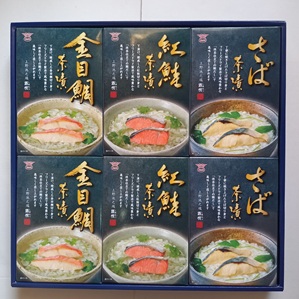 内容量 金目鯛、紅鮭 具材18グラム、お茶漬の素3.3グラム