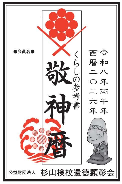 本品は、杉山検校遺徳顕彰会が配布する敬神暦。後半には、東洋鍼灸専門学校校長 大浦宏勝先生の、検校あれこれ杉山和一の業績、公益財団法人 杉山検校遺徳顕彰会 松本俊吾先生の、医聖杉山和一検校の管鍼術に魅せられて四十路の軌跡、公益財団法人 杉山検校遺徳顕彰会副理事長 黒澤淳先生の、季節の身体と養生法の原稿が記載されております。