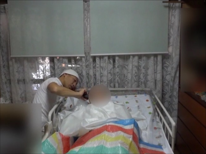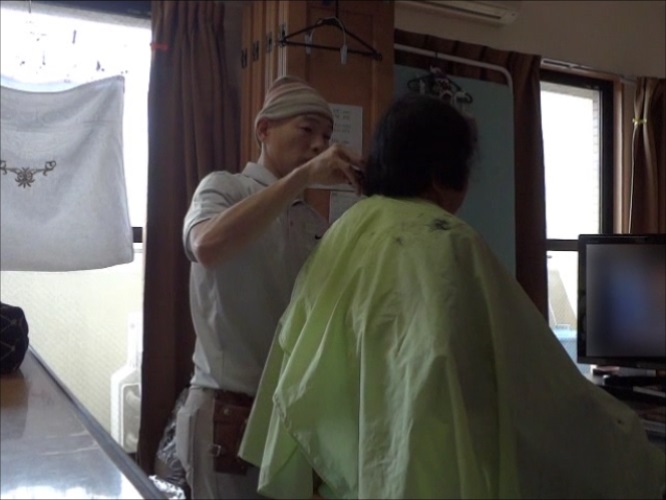 ご自宅で寝たきりの方のヘアーカット風景です