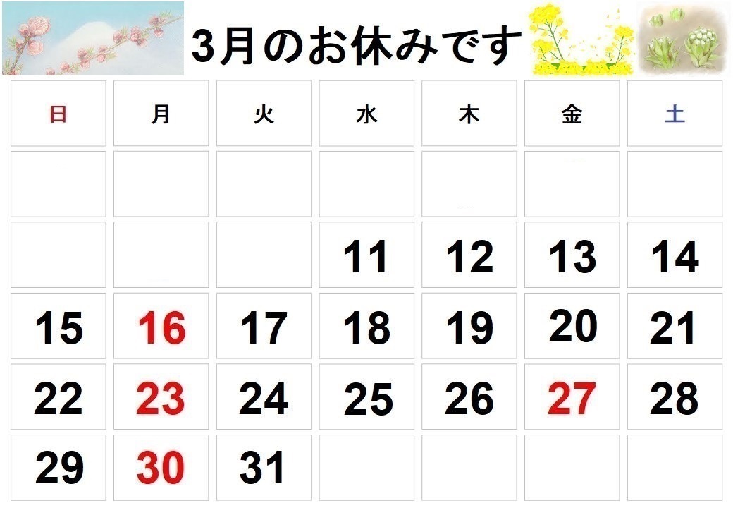 3月のお休みです