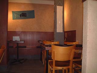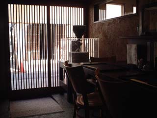 店に入ると左手に石臼、そして蕎麦打ち室があり、5人ぐらいのカウンターがあります。奥はテーブル席です。カウンターの中では店の方々がきびきびと料理をしています。