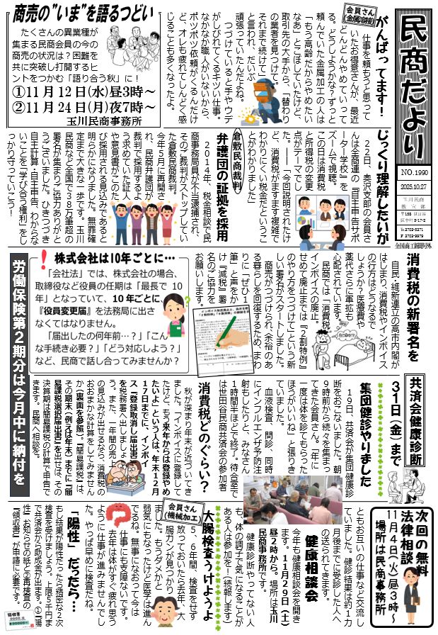 この不況下、税金、社会保険料、公共料金などの支払いは追いついてますか?「滞納が…」「どうしよう」との相談が次々と!憲法・法律にもとづき、商売を続けられる対策をご一緒に考えていきましょう。