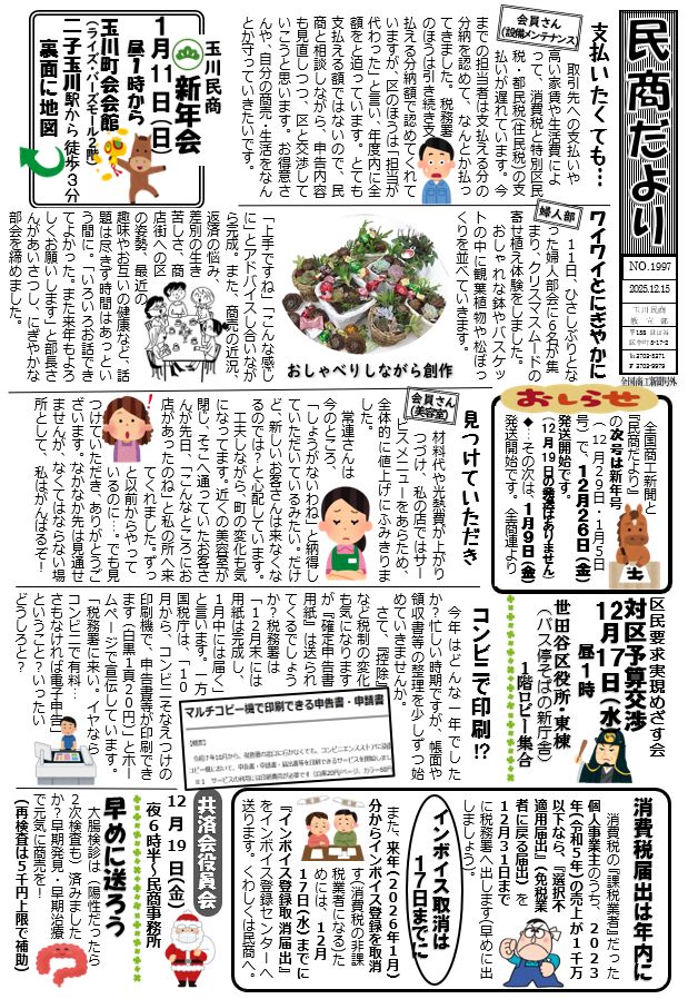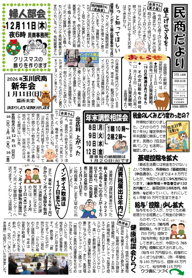 23年10月から消費税のルール変更=インボイス方式がスタート。シワ寄せ・実害が続き「直ちに中止」の声が広がってます。消費税のこと、じっくり考え、意思表示しませんか。登録した方もふくめご相談は玉川民商へ
