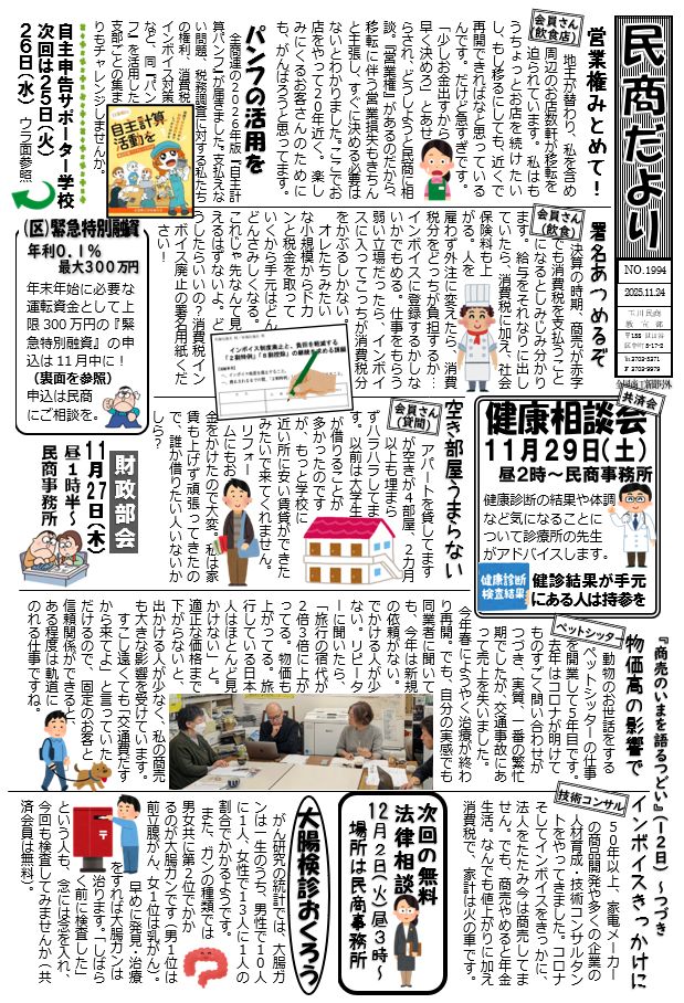 この不況下、税金、社会保険料、公共料金などの支払いは追いついてますか?「滞納が…」「どうしよう」との相談が次々と!憲法・法律にもとづき、商売を続けられる対策をご一緒に考えていきましょう。