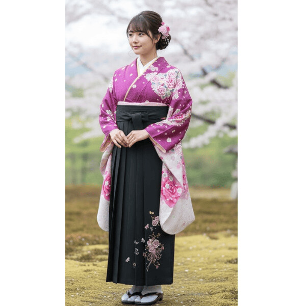 紫暈し花柄ワンランク上の着物と刺繍袴No.100-115