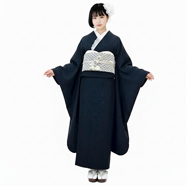 振袖レンタル|最新作|レース振袖黒地・レース袋帯のフルセットレンタル|No.800-97