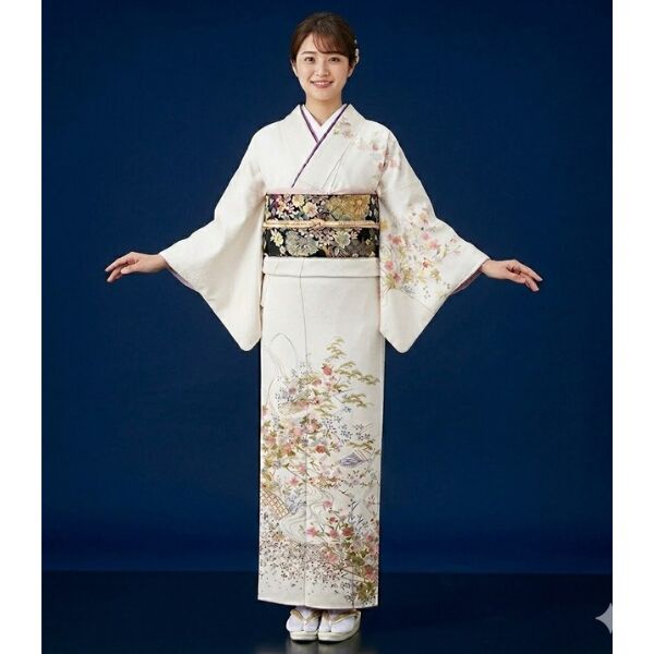 訪問着は、披露宴やパーティ、茶会、見合い、結納などに向き、幅広い場所で着用可能。未婚・既婚を問わない社交着。色留袖の次にフォーマルで、社交用や訪問用などに着る、準礼装の着物。