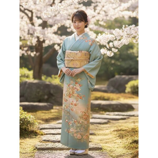 ・着物・重ね衿①帯②半衿付き長襦袢③帯〆④帯揚げ⑤草履⑥バッグ⑦腰ひも×5⑧伊達〆×2⑨帯板⑩帯枕⑪衿芯⑫コーリンベルト⑬肌着+裾除け(または着物スリップ)⑭足袋(新品)