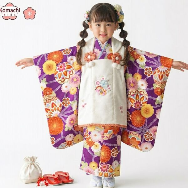 七五三|3歳|白地|可愛い花柄|刺繍|No.360